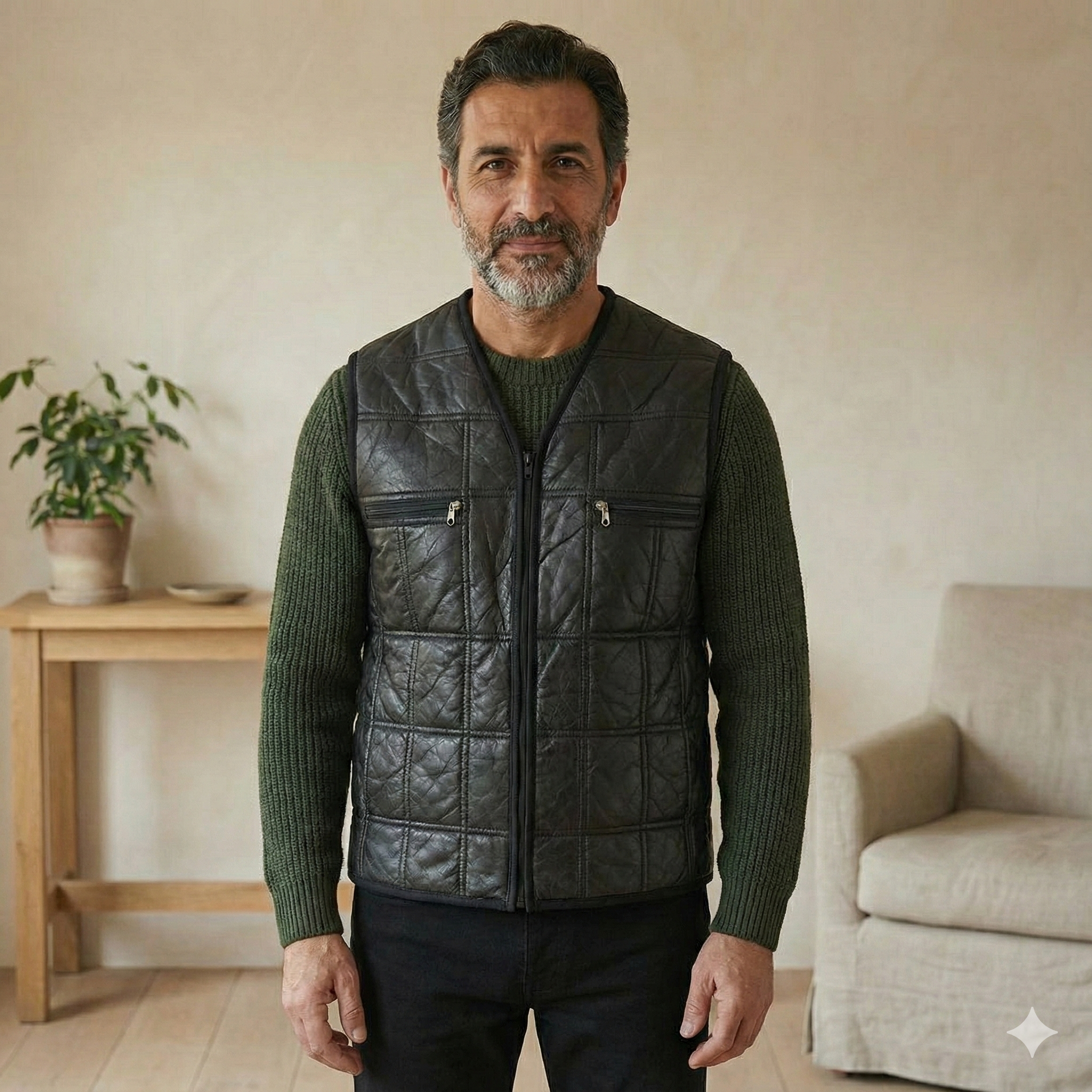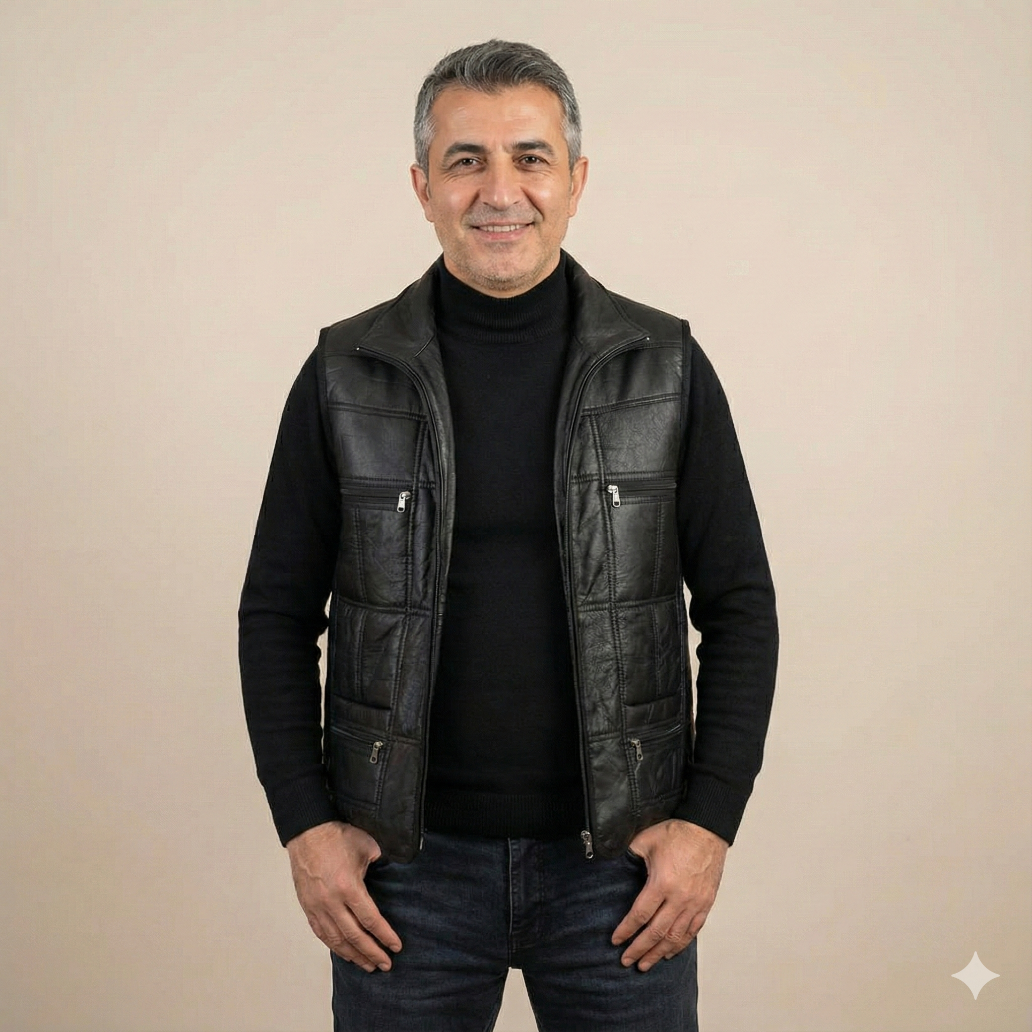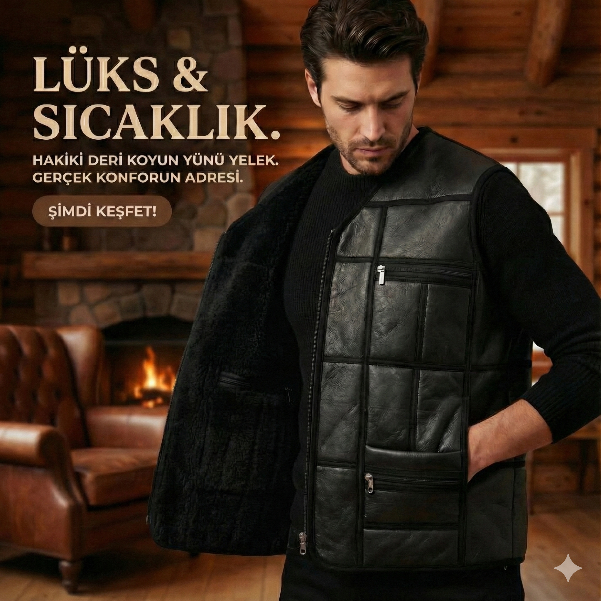 "Bu yelek, Anadolu'nun geleneksel 'Kırkyama' tekniği ile usta ellerde bir araya getirilmiştir. Dışı rüzgarı kesen %100 hakiki parça deri, içi ise sizi en soğuk günlerde bile sıcak tutacak doğal kürktür. Her parça benzersizdir."